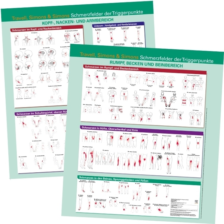 Die beiden Poster bieten einen Überblick über die Triggerpunkte und ihre Ausstrahlungsmuster, basierend auf den Abbildungen des Originalwerkes.